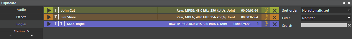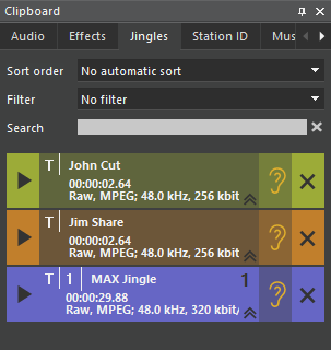 The DigaSystem Audio Editors work with a pool of media objects which are listed in the Clipboard pane.
