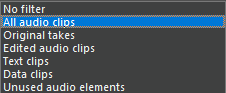 | Loudness normalization to take | Starts a loudness normalization. The correction gain is calculated into a newly rendered take, which appears at the bottom of the clipboard's list. |