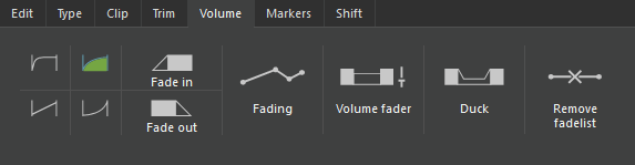 These volume edit functions allow changing the volume progress inside the selected time range.