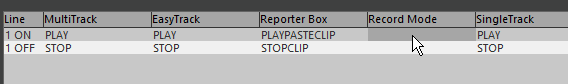 In the line definition grid you can define actions to be performed when an Ember+ line changes its state. Different actions can be performed when the line is opened ("ON"), and when it is closed ("OFF"). Actions can be defined individually for each editor screen. Depending on the hardware and the configuration of the TIOEmberPlus.dll, you can open/close the line moving a fader and/or pushing a button.