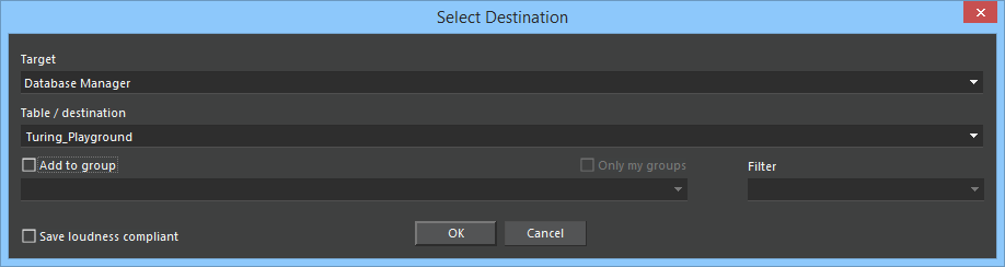 Select destination, optionally check the Select loudness compliant mark and confirm with OK.