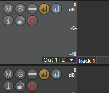 By default, the first track is assigned to the first output channel pair (here Track 1 is on Out 1+2); the second to the second; etc. If there are more tracks in use than output channel pairs available in the current configuration, the highest tracks are routed to the last available output channel pair (in this case every track from the forth one will get the Out 7+8 assignment.