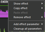 Left clicking the FX icon opens the context menu for changing or removing the applied effect: