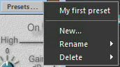 - Click the Preset button in the title bar of the effect dialog. The following context menu appears: