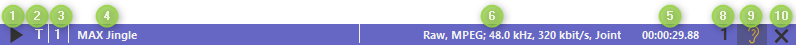 | 1 | Play/Stop button | Start playback for prelistening. (while playback the button changes to a Stop button) |