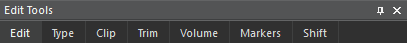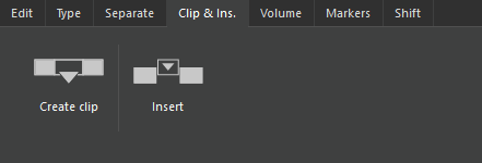 | Cut create clip | Creates a clip from the selected time range, which is added to the Clipboard with a user-defined title. Cut the selection off, then shift tracks' content to fill the gap. |