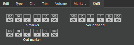 -1 / +1 -10 / +10 | At the soundhead position 1 / 10 frames will be removed / restored. |