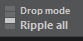 You find the Drop mode button in the Toolbar. Clicking it advances its state from Normal to Ripple and to Ripple all and to Overwrite.
