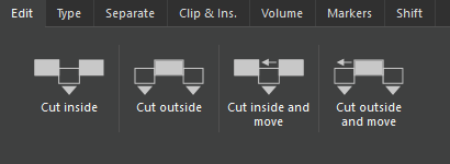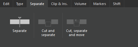 | Cut, separate and move | Like Cut and separate, but shifts remaining audio to fill the gap. |