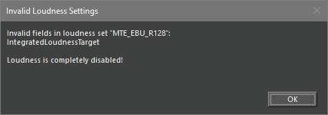 Note for MTE: If this entry is missing all loudness features are disabled for the corresponding customer/computer/user. If the Loudness Set is invalid or incomplete, a message will be shown at editor startup indicating the source of the problem and that all loudness featured will be disabled.