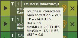 | Correctable | This audio does not match the defined Loudness criteria, but can be corrected to the “Compliant” status by Loudness normalization (see below). |