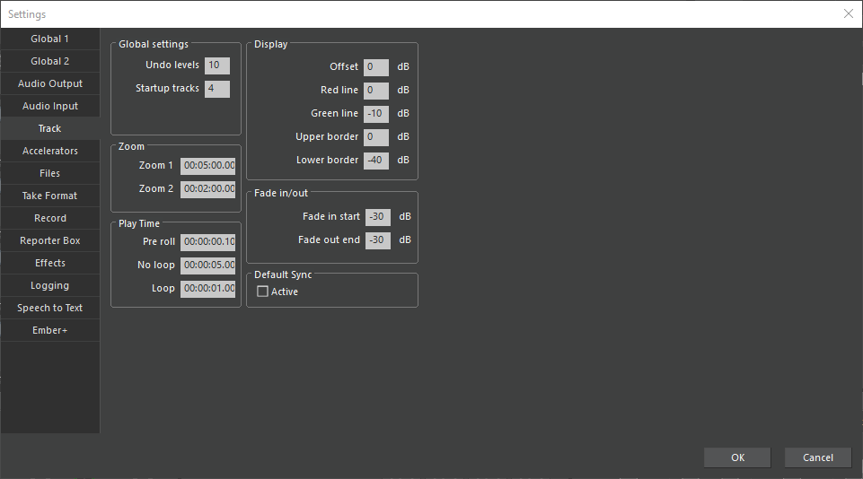 Under Global settings you may set the number of possible Undo levels and the initial number of the Startup tracks.