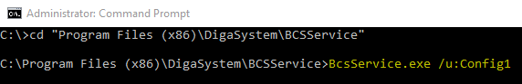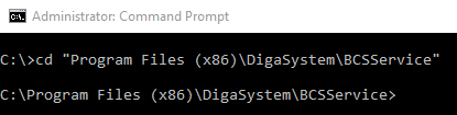 1. Copy all files of the installation package (or unzip) to a folder. In the following example, BCSService is a subfolder of the DigaSystem folder: