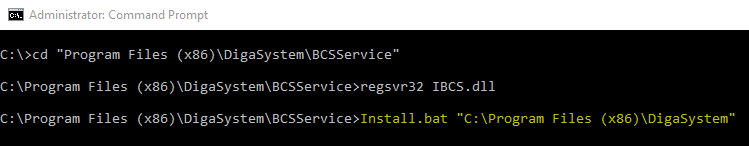 4. Execute the command Install.bat Path_To_DigaSystem, where Path_To_DigaSystem is the full path to your DigaSystem directory.