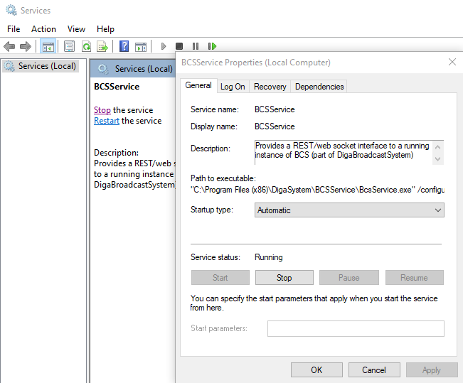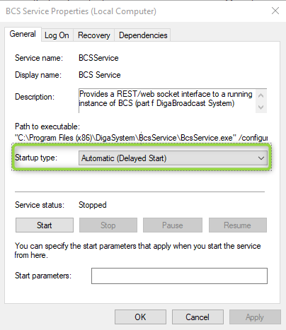 6. Now you can configure the installed service in Windows Service Manager, if needed. For example the "Startup type" or the "Log On".