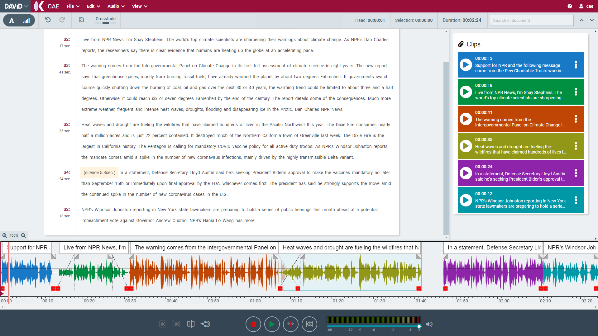 Contextual Audio Editor, in short CAE, is a web application for refining audio over any web browser. It can be integrated with different Speech to Text service providers to also have a text based audio editing experience.