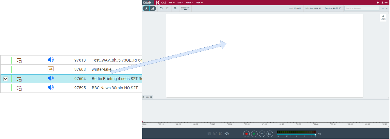 Load a local audio file from file system by dragging it onto text area or timeline.