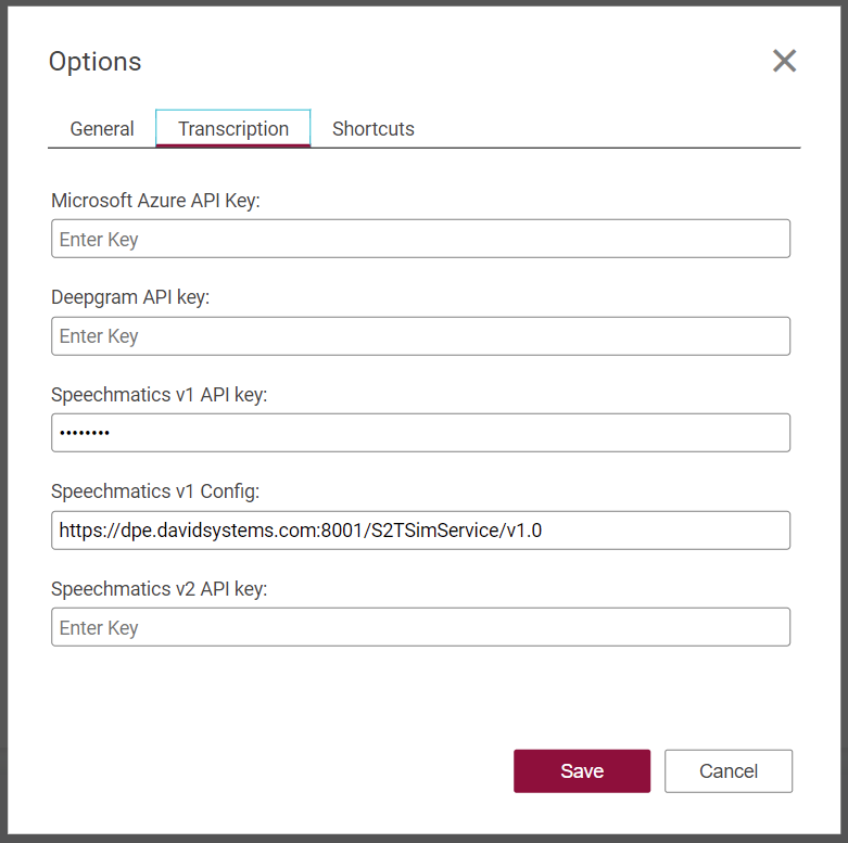 Some transcription service providers may be configured with additional data, e.g. you can configure an URL for Speechmatics v1
