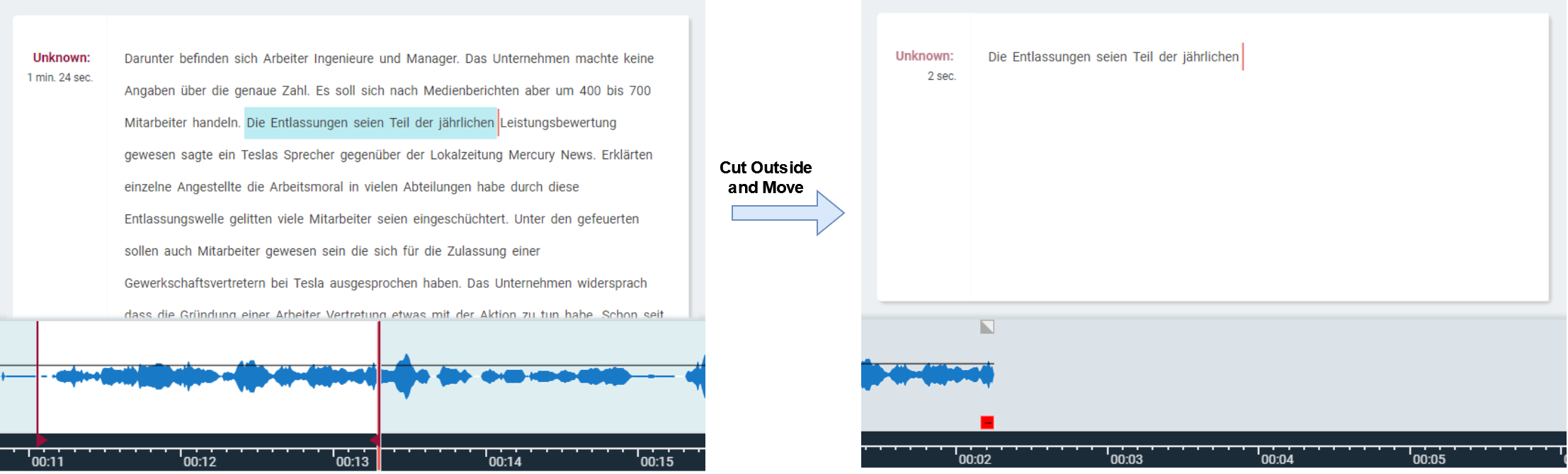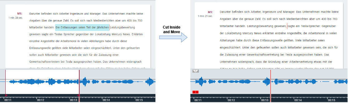 Cut (remove) the inside of a marked range. It can also be triggered from transport bar near the waveform.