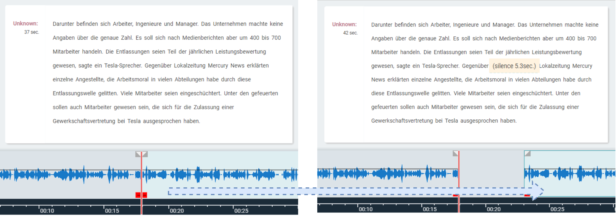 Standard editing options like cut, copy, paste are supported in Text and Waveform View. However, some modes like snap, gain Adjustments etc, are only possible in Waveform View.