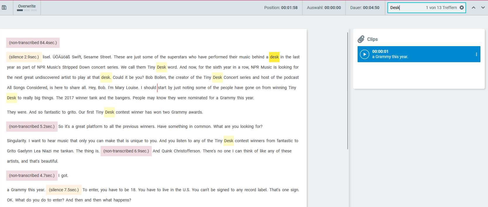 Words can be searched in the Text Area from the search input field on the top right corner.