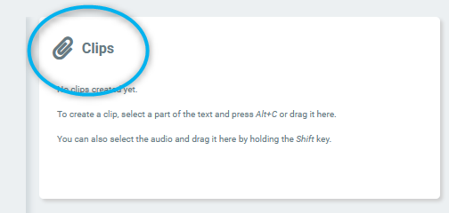 The Clipboard area is a great toolset to organize Text and Audio Elements.