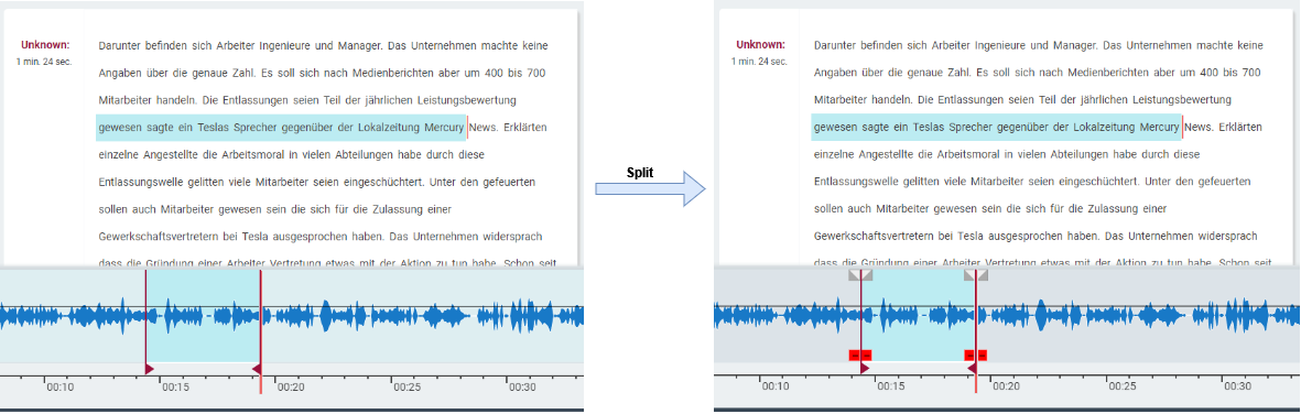 Split Audio function splits (breaks) a large piece audio into segments. These segments can then be independently moved and operated upon.