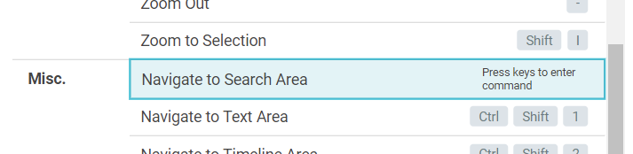 Select a command and click the edit icon to start modifying a shortcut: