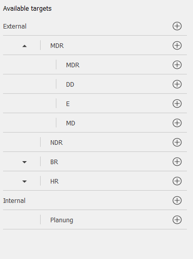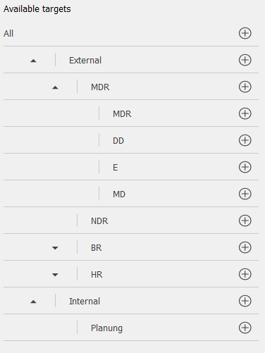 A parameter controls whether an "All" item is inserted at the to of the tree of available distribution targets. Sending a group to "All" does not necessarily mean the same as sending to every single target listed in the tree; rather, "All" is a special target whose meaning is determined in the configuration of the StoryConnect service.