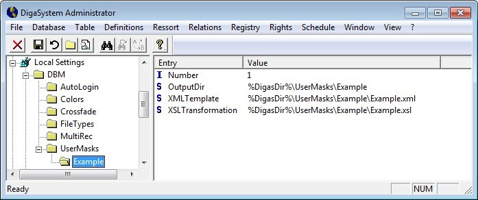 The following parameters are specifically for each UserMask and need to be defined using their corresponding subfolder of "DBM|UserMasks", in this case: Local Settings|DBM|UserMasks|Example|