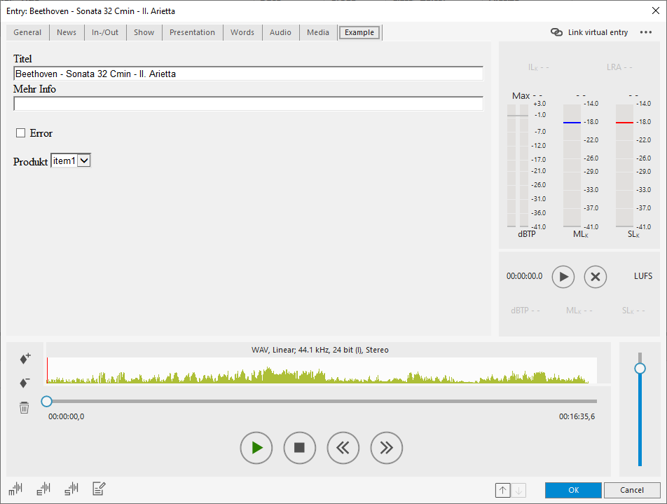 The following configuration example refers to the XML user mask "AContentTab", that can be downloaded with the link in section XSL UserMasks above.