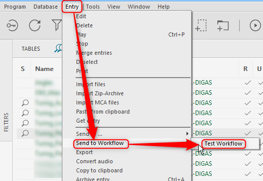 - Via the context menu (right click on the selected entry):