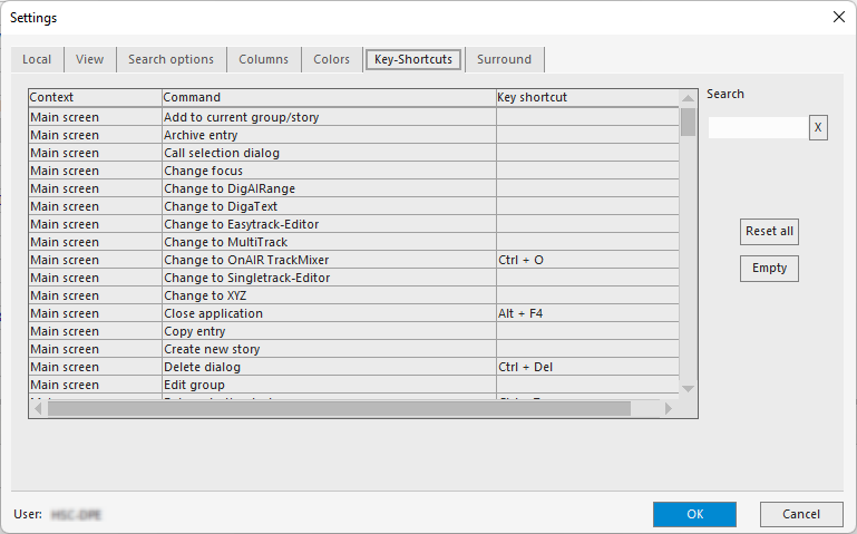 It is easy to define a keyboard shortcut for a function. Just click the respective row in the function list, then press the key or key combination. The key combination is saved when you click the "OK" button.