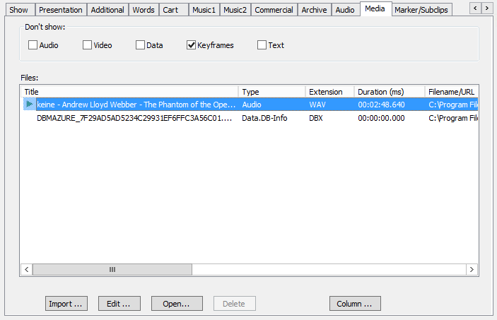 Since any type of file can be stored in a DBM entry (audio, video, graphics, texts, docs, pdfs etc.), the media tab lists all files that are assigned to the entry and show their file type.