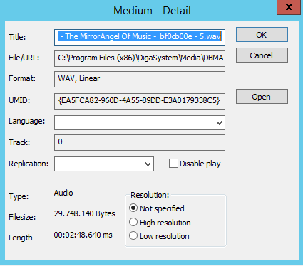 Depending on the format of the media files, different tools for viewing / editing are used. All files which cannot be edited or viewed with a DigaSystem module are automatically opened with the application assigned by Windows for this kind of file type. E.g. by double-clicking a pdf file, the Acrobat Reader (if installed) automatically starts and opens the file. If more than one audio file exists, the file having the green arrow is loaded, while the file with the red dot marks the file saved in filename 1.