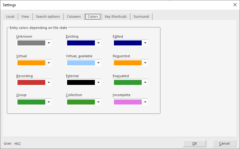 The state of an entry is shown by the entry color; in this dialog the meaning of the entry font color can be defined.
