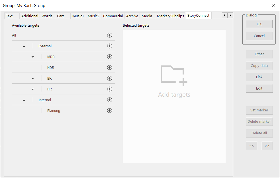 The "Internal" targets usually are within your radio station. The "Internal" target is absent if no such destinations are provided by your StoryConnect Address Book service.
