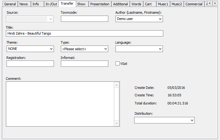 This tab is mainly used for the file transfer within the ARD public radio stations in Germany. So the fields are mainly based on the work of the ARD AFT (audio file transfer) taskforce.
