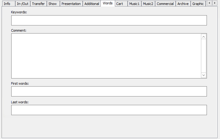 Comment | Input field. Any text can be entered here as an rtf formatted text. The comments are transferred as presenter help texts to the on-air software NewsPlayer4 and CartPlayer4. |