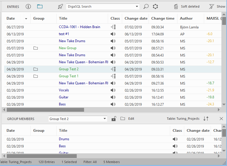 As soon as a group has been created, the entries can be assigned and managed in the GROUP MEMBERS window on the lower half of the entry list.