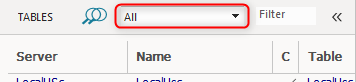 You can select "All" or one of the table groups in the list by clicking the downward pointing triangle. The list of displayed tables will be restricted to members of the selected group.