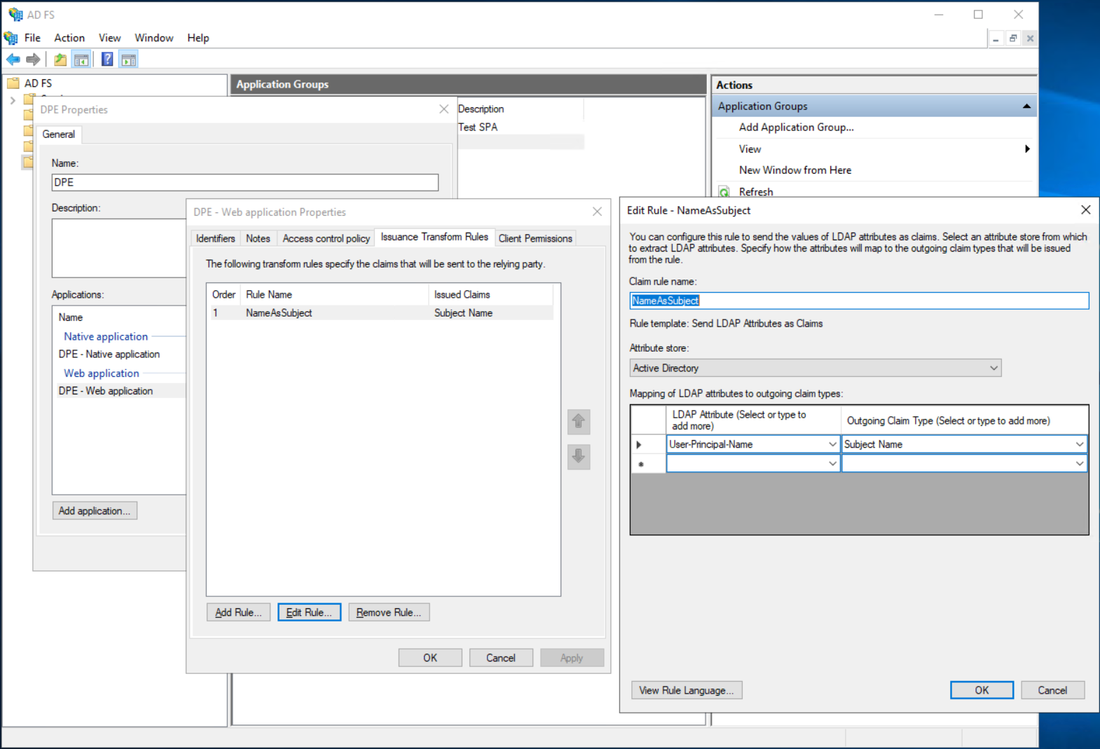 Create an AD FS Application Group for DPE web applications
