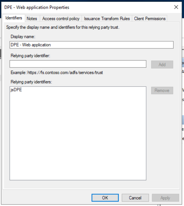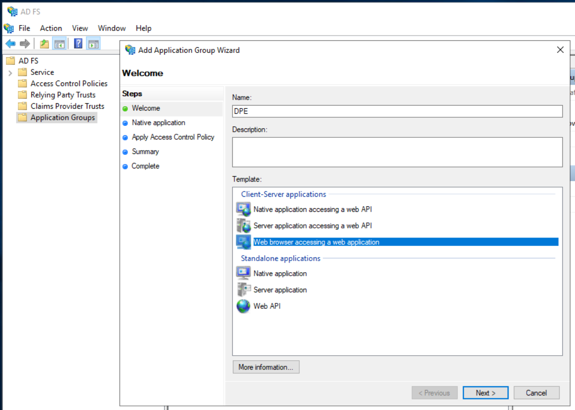 Create an AD FS Application Group for DPE web applications
