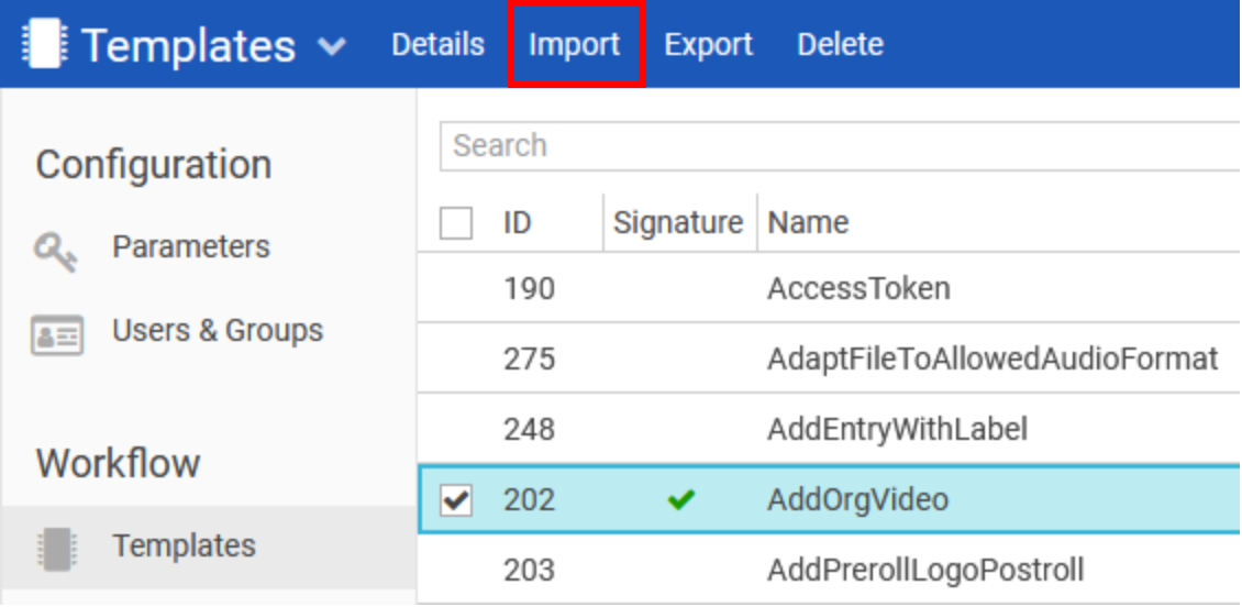 In the Web Admin, navigate to Templates (for workflow templates).