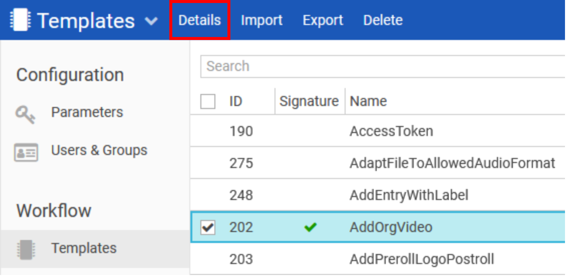 To view the metadata information for a template, simply click the "Details" navigation link: