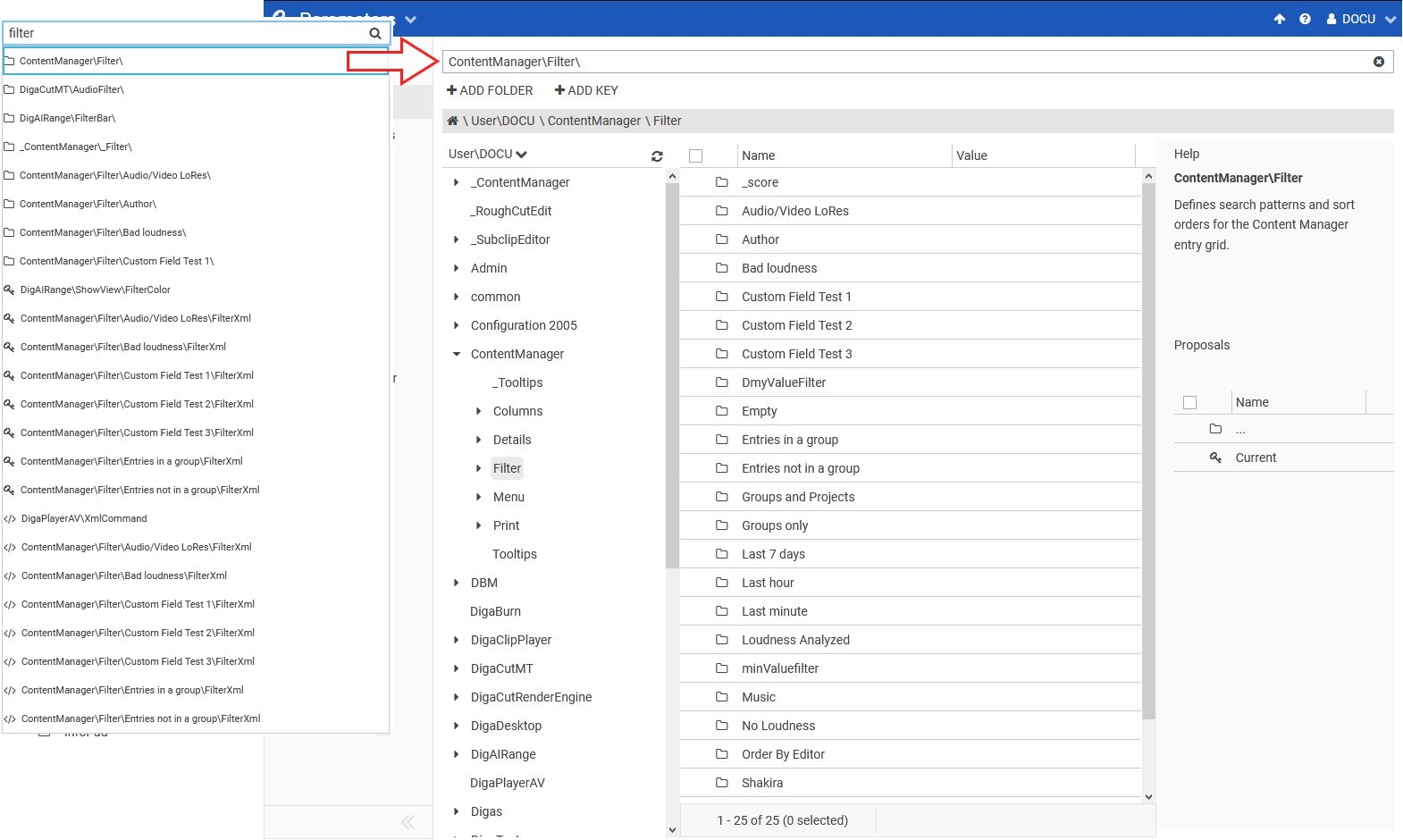 Selecting a path will automatically bring you to the destination folder in Parameters Tree. A corresponding path can also be viewed in the "Navigation" bar.