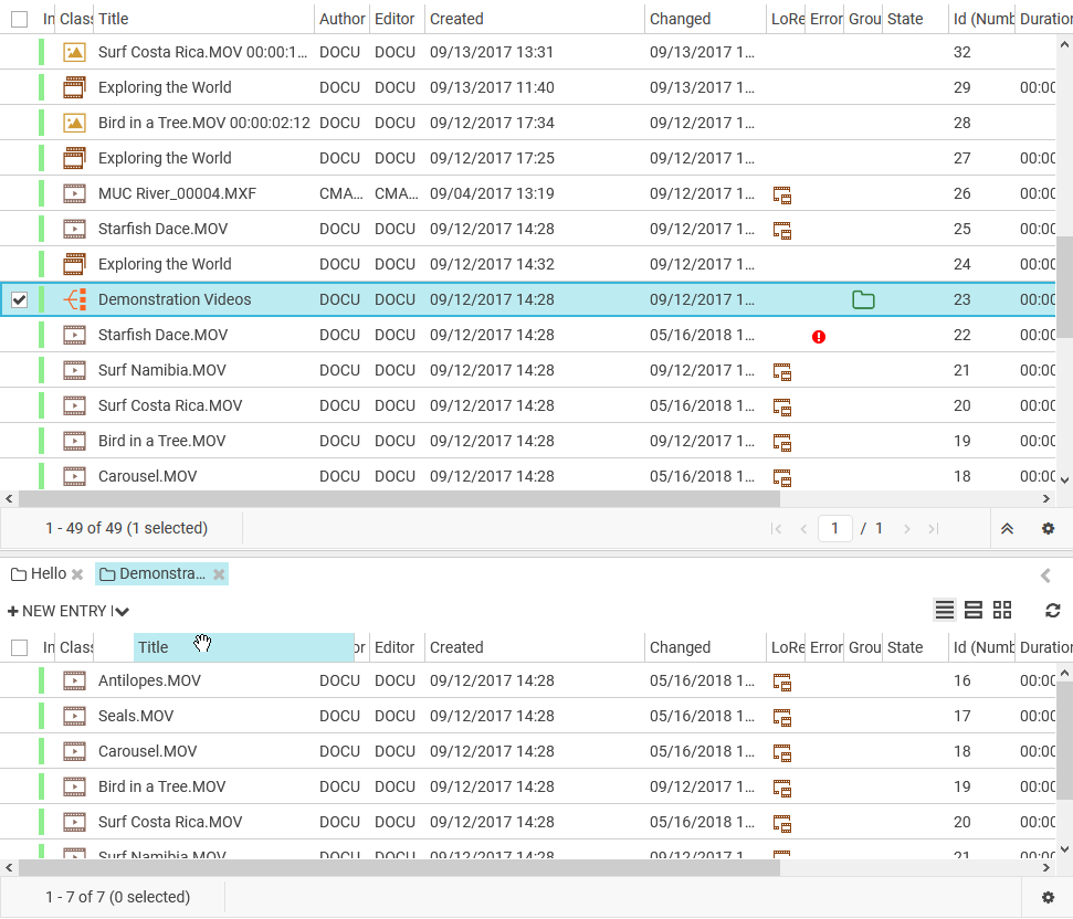 Lists which share the same column configuration are also updated. For example, when a group in table1 is open and the Entry Area also displays table1 any change of the columns for opened groups or the Entry Area are synchronized.