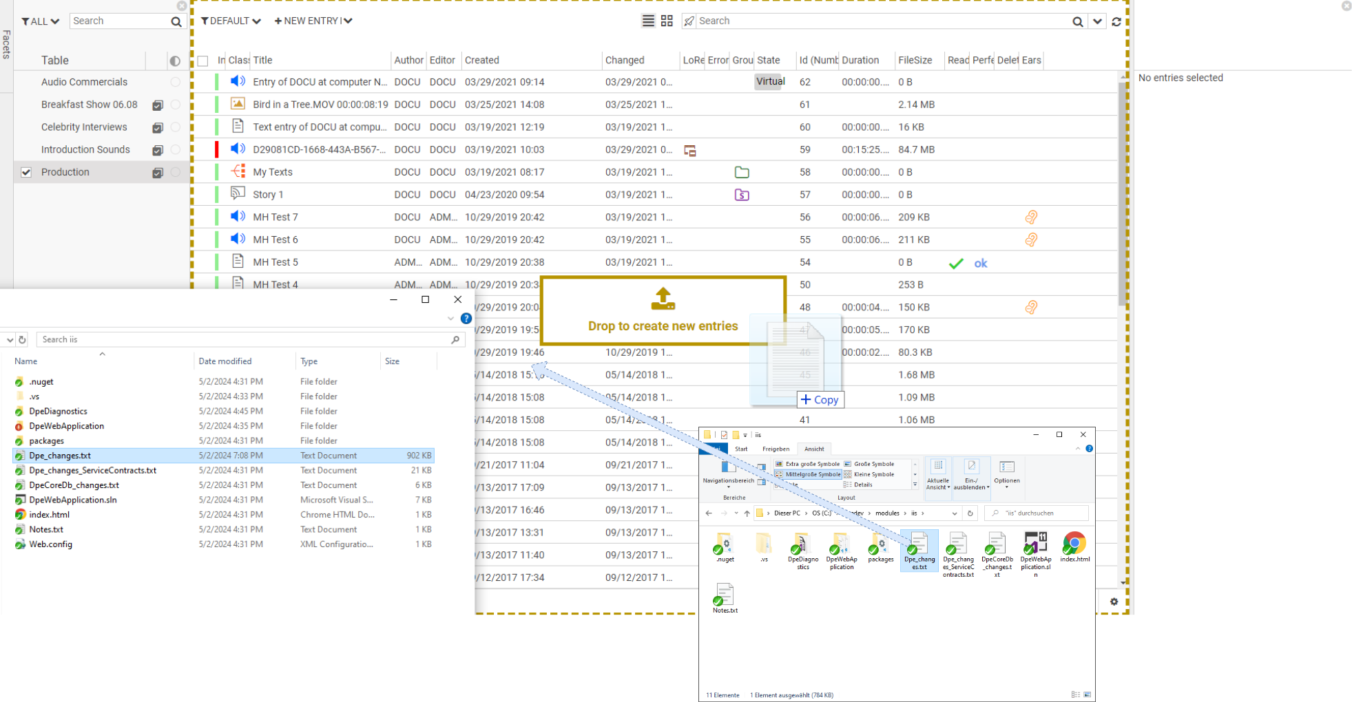 There are various ways to create a new entry within DigaSystem. One can drop a file onto Content Manager, drop an image dragged from another web application or use the "New Entry" button, to add multiple media files or customize the metadata. Read on for a step by step instruction.