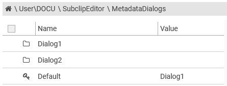To mark a dialog as default which is pre-selected when a meta-data overlay pops up, simply set |SubclipEditor|MetadataDialogs|Default key to the name of the dialog folder.