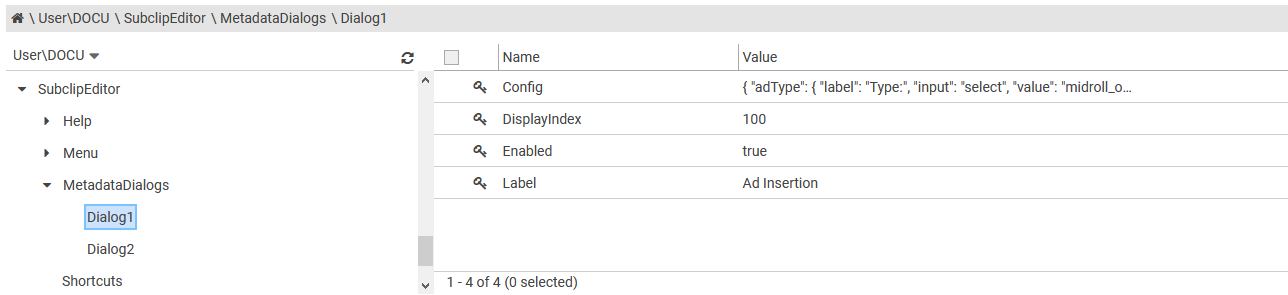 Dialogs are configured at |…|SubclipEditor|MetadataDialogs|<dialog>|.